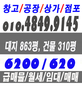 대지 863평 / 건물 310평 / 보증금 6200만원 / 월 620만원